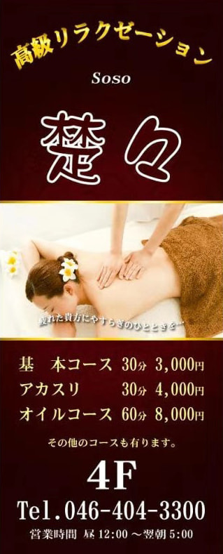 本厚木駅北口から徒歩3min、高級リラクゼーションエステSoSo 楚々